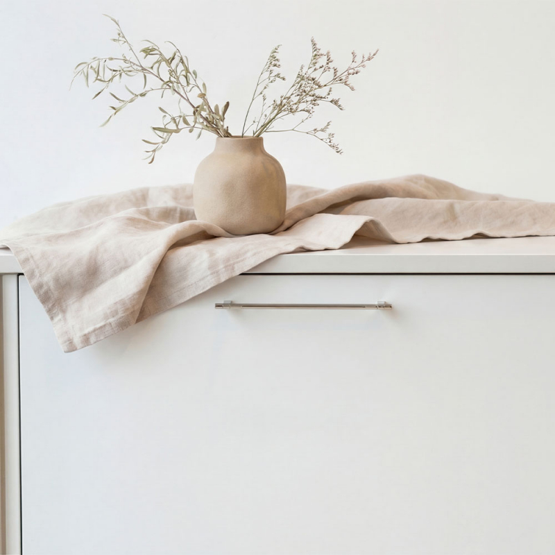Den nette designen gjør at håndtaket oppleves lett og stilfullt på møbelet, samtidig som det tilfører karakter. Petit passer like fint i kjøkken og bad som på garderober og andre møbler.
