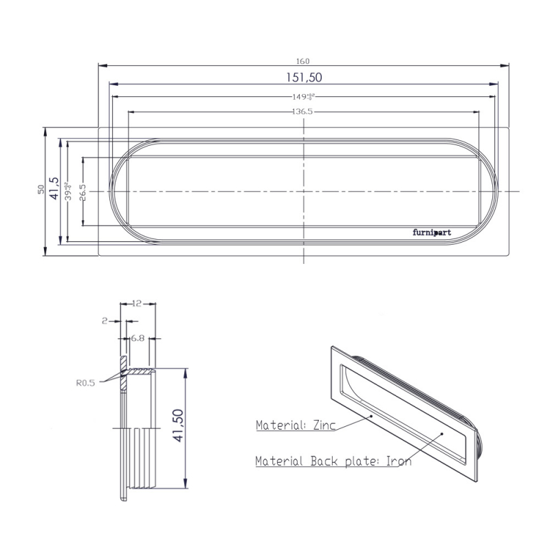 Artikkel lengde: 160 mm Artikkelbredde: 50 mm Artikkeldybde: 12 mm Dybde i fordypningen: 10 mm Farger/overflate: Rustfri look Fordypningsbredde: 41 mm Fordypningslengde: 151 mm - Vedlikeholdsråd