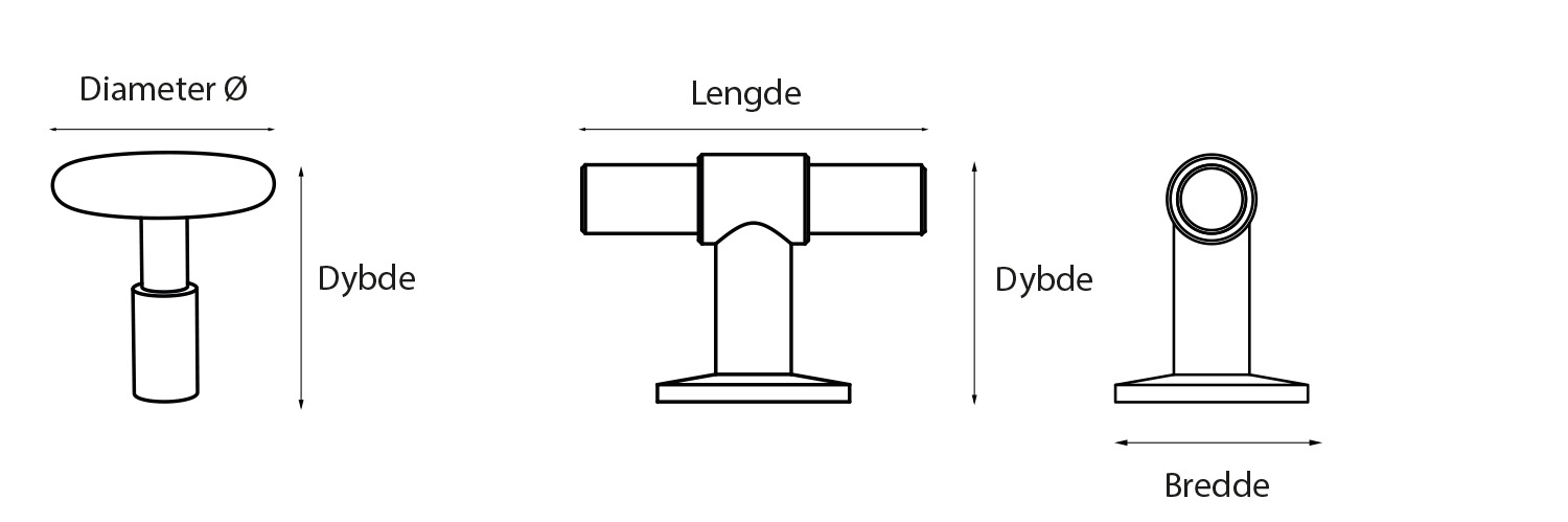 Artikkel diameter: 33 mm Artikkel lengde: 33 mm Artikkelbredde: 33 mm Artikkeldybde: 24 mm Materiale: Pulverlakkert stål Målinger av foten: dia.18.5 mm Skruer inkludert: Ja - Vedlikeholdsråd